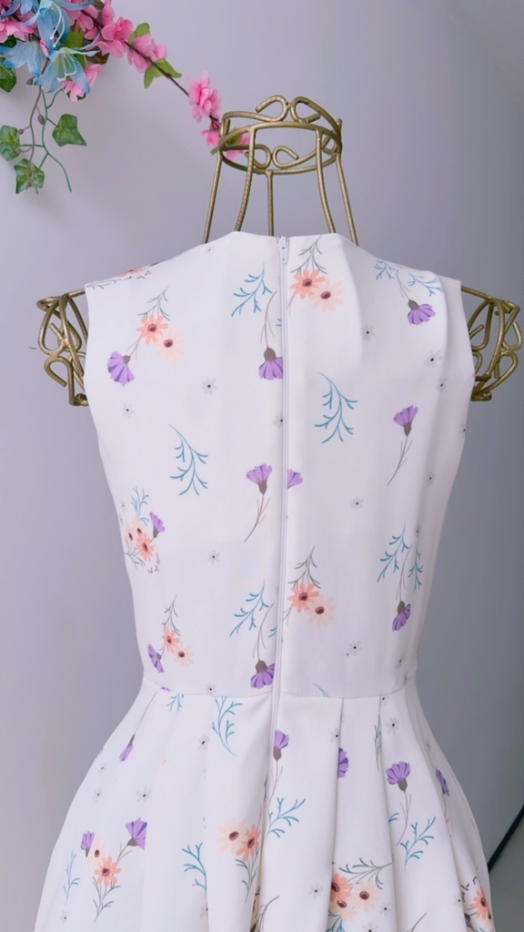 O Mídi Audrey traz consigo um novo design em seu busto, o qual, mesmo com gola canoa alta, ainda comporta um lindo detalhe similar a um lenço costurado em toda extensão dos combros, os quai se unem transversalmente formando uma bela amarração.