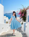 A saia godê, ampla e fluida, traz movimento e feminilidade, enquanto os bolsos laterais invisíveis unem praticidade sem comprometer o design. O fechamento traseiro por zíper garante facilidade e acabamento impecável.